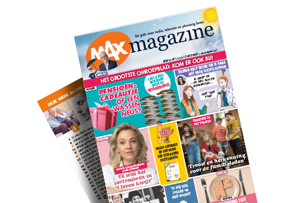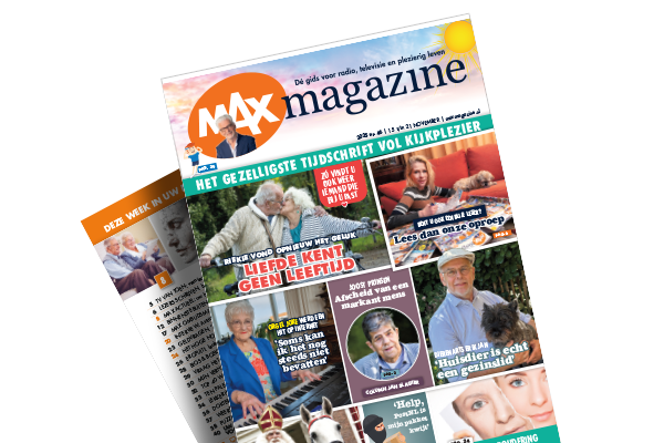 MAX Magazine is het grootste tijdschrift van Nederland en hét wekelijkse omroepblad van Omroep MAX. Daarnaast staat MAX Magazine boordevol actuele artikelen, aangrijpende interviews, columns van onder anderen Jan Slagter, puzzels, winacties en blijft u op de hoogte van alles op het gebied van Omroep MAX, wonen, gezondheid, financiën en meer. Naast een proef- of jaarabonnement op ons tijdschrift, kunt u ook kiezen voor een abonnement met cadeau. Of doe MAX Magazine cadeau aan een dierbare.