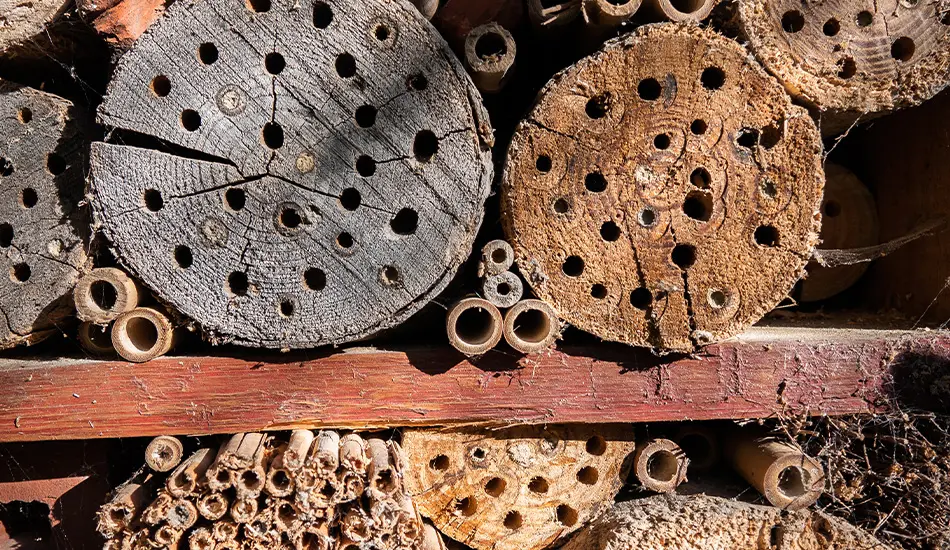 De metselbij is zo’n solitaire soort die zich makkelijk naar uw tuin laat lokken met een zelfgebouwd insectenhotel. Zo’n hotel kan van alles zijn: een bundel riet-stengels, een paar bamboestokken, of – heel luxe – een baksteen met voorgeboorde gaten. Een insectenhotel is snel en makkelijk te maken van een stuk hout waarin gaten worden geboord.
