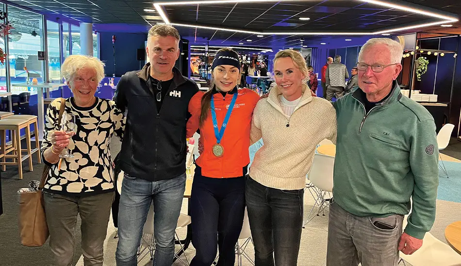 “Wat zo mooi is aan Femke is dat ze nooit opgeeft”, zegt ‘beppe’ Sjoerdje (78). “Dat zagen we al als tiener. Zo fanatiek! De laatste jaren is er meer rust in haar leven gekomen. Ze kan beter doceren. Af en toe gunt zij zichzelf nu iets leuks. Zo gaat ze als het in het trainingsschema past met haar vriendinnen naar een concert in Amsterdam. Ze komt hier nog vaak langs en dan eet ze een hapje mee.” Henk: “Femke hebben we vaak wel twee keer in de week naar de ijsbaan in Heerenveen gebracht. Het is mooi om te zien hoe goed ze nu is. Dat ze kans maakt op olympische medailles heeft haar niet veranderd. Ze is nog steeds bescheiden.”