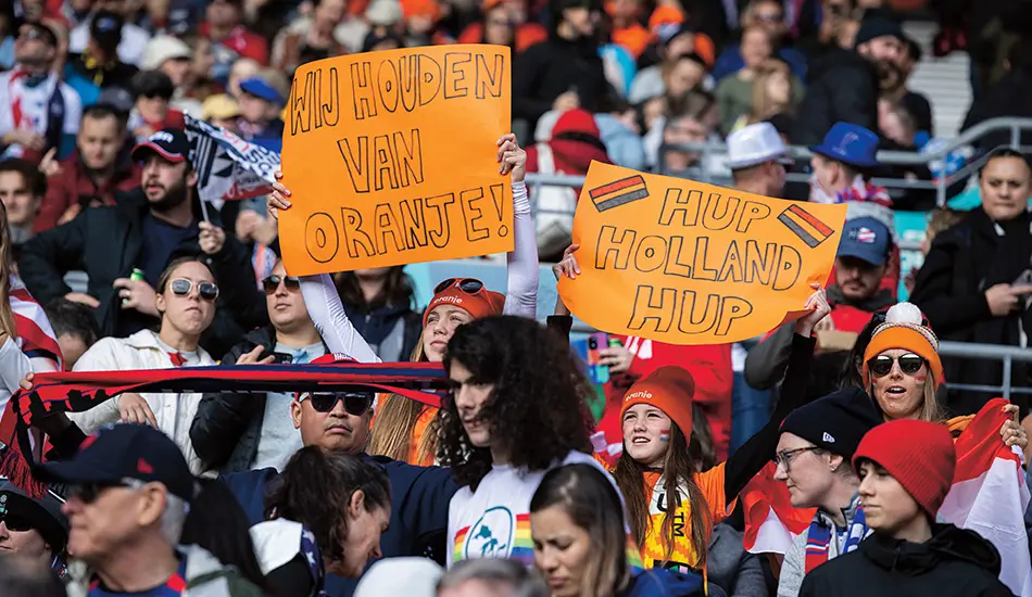 Het ‘Hup Holland hup’-refrein bleef steeds hetzelfde. Naarmate de tv de plek van de radio als thuisstadion innam, liet het publiek het Hup Holland-lied in zijn hempie staan, totdat de voetbalmannen naar het EK in 1988 togen. Opeens was het daar weer. Uit volle borst. Kampioen werden ze. En húp, daar gingen ze als Europese kampioenen de grachten over. Menig woonbooteigenaar moest vrezen voor zijn drijvende huis. Overal stonden mensen te juichen van trots en plezier. Dat jaar werd ook het lied ‘Wij houden van Oranje’ van André Hazes een hit. Voetballiederen zijn als die dronken oom op een familiefeest. Ze zijn luid, soms gênant, maar je zou ze voor geen goud willen missen. Ze verbinden mensen, creëren een gevoel van saamhorigheid en maken van een simpel spelletje een epische strijd.